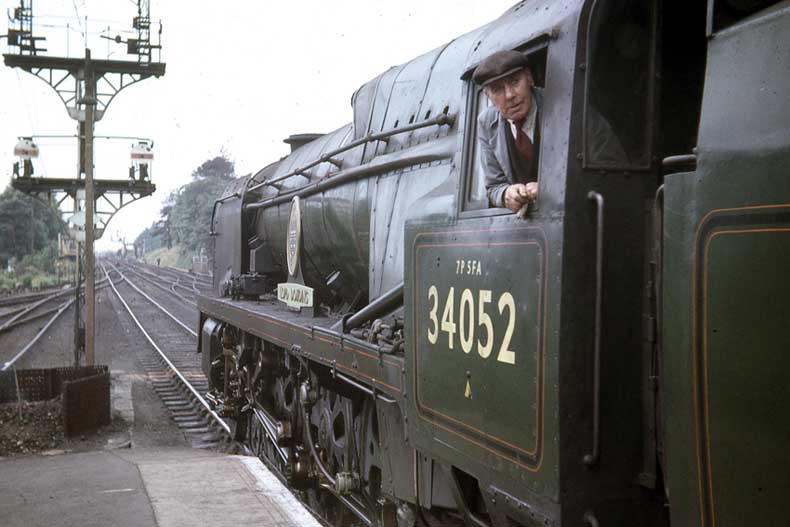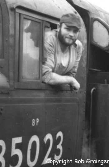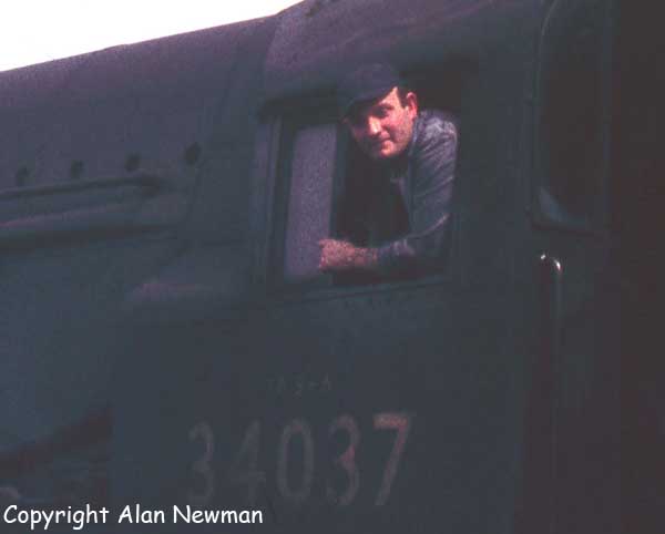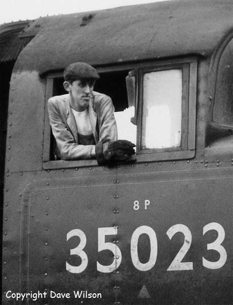 ![]() Driver B.A.G. West who was a Driver at Nine Elms from 1960 until 1967. He is seen here with 35030 at Winchester. (Photo B.A.G.West collection)