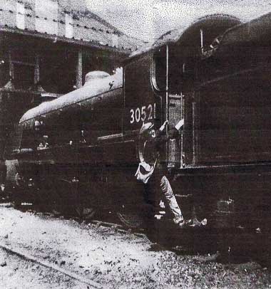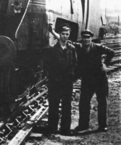 ![]() Nine Elms driver Bert Thompson seen here in 1950 with his fireman Bill Hughes at Nine Elms depot prior to the departure of 35004 'Cunard White Star' on the Devon Belle duty. (Photo collection of Jim Simpson, copyright to be confirmed) ![]() Nine Elms fireman Glynn Thompson seen here at Vauxhall. (Photo copyright Glynn Thompson) ![]() Bernard Tipping Nine Elms engineman, on board 34087 '145 Squadron' at Nine Elms 1959. (Photo J.C.Lester collection) ![]() Fireman Alf Trapnell who transferred to Nine Elms from Exmouth Junction in 1964 is seen leaving Waterloo in 1965, and on 34051 'Winston Churchill'. (Photos Alf Trapnell collection)