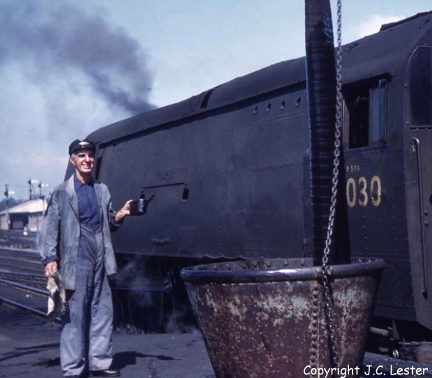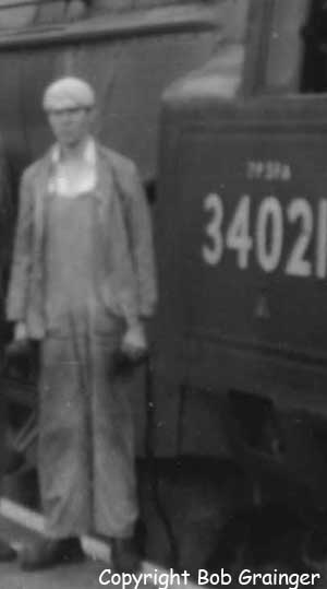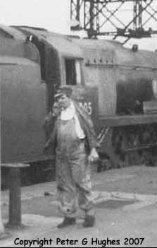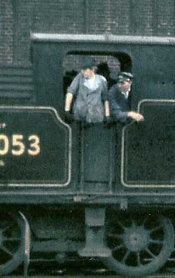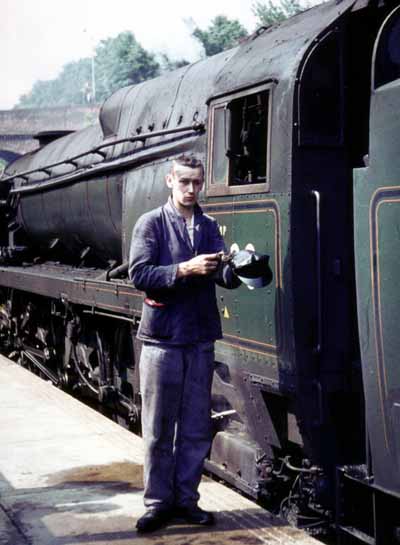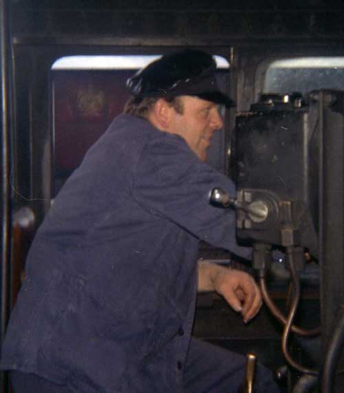 ![]() Nine Elms fireman John Roscoe with the coal pick. (Cropped image from photo copyright Les Kent, via Alan Newman)