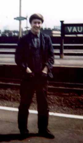 ![]() Fireman and later driver Jim Woutersz. Photo dated 7th April 1964 when Jim was fireman on 'Nine Elms Special 2', down with the 0854 'Carmania' boat train to Southampton Old Docks with 34090, returning with freight to Nine Elms Yard. Jim's driver, Ernie Doust took the photo on the return journey near Wallers Ash - 'having a rough trip'. (Photo Jim Woutersz)