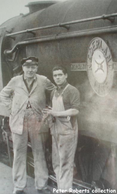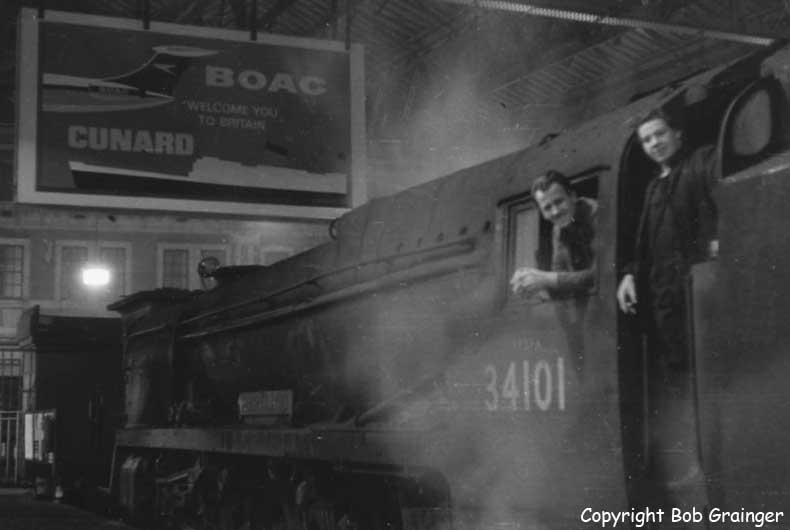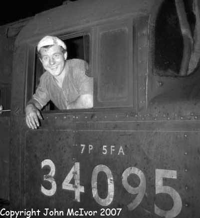 ![]() Driver Harry Pope and his fireman Mike Roberts on board MN 35012 at Waterloo in 1965. (Photo copyright Mike Roberts)