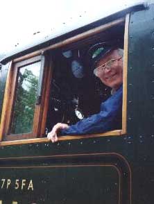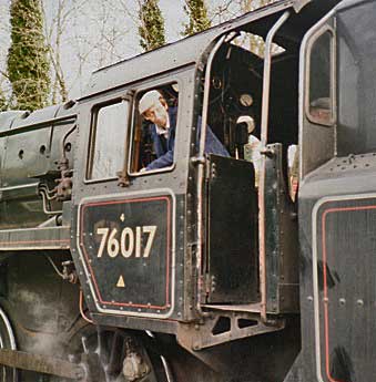 ![]() Driver Kenneth - Kenny 'Kipper' Rowe is seen here on board 76017. (Photo Jim Lester collection, photographer unknown) ![]() Driver Jerry Sartin see here on a visit to the RH&D railway (photo thanks to Alan Newman, copyright George Barlow)
