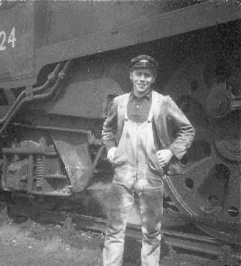 ![]() (Left) Engineman Albert Wright beside West Country 34016 'Bodmin', 25th September 2004 (Photo Jim Rowe collection) (Below) Early b&w photo of Albert from Tom Coles collection.