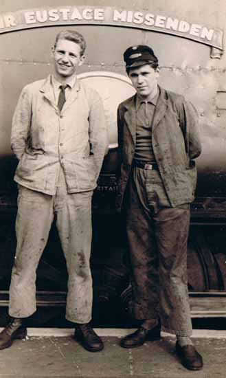 ![]() Driver Charlie Philpot (right) and old friend Roger Caple in front of original BB No. 34090 'Sir Eustace Missenden'. (Photo Roger Caple collection via Jim Lester)