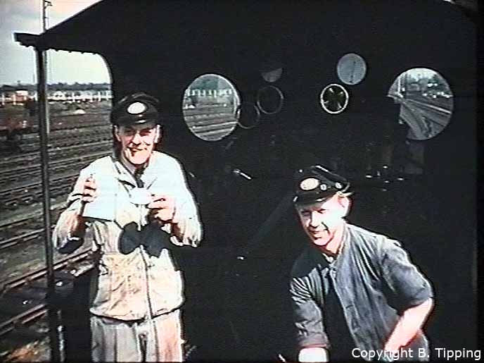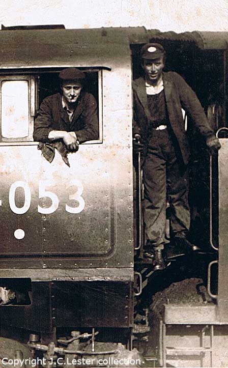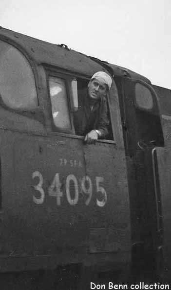 Fireman Barry Mackett - click here for photograph ![]() Driver Ted Male on 34056 at Basingstoke with the 1800 from Waterloo in 1966. Don Benn writes that the 6pm down was a Nine Elms turn until the beginning of May 1966 when Salisbury men took over. He thinks the fireman in the shots is Chambers. (Photos copyright Don Benn) ![]() Fireman Jim Martin on 34021 at Christchurch with the 0245 Waterloo to Bournemouth, 24th June 1967. (Photo copyright Bob Grainger) Fireman Brian Masters - click here for photograph ![]() Fireman Eddie May in Nine Elms New Shed. (Photo copyright Bob Payne) ![]() Joe McCarthy at Waterloo, 10th October 1965. (Photo Dave Davis collection) ![]() Driver Syd McCaughie on the footplate of a Nine Elms allocated 0-6-0 Class '700'. (Photo Doug Smith collection) ![]() Driver Lionel 'Dusty' Miller is seen here climbing onto the footplate of 'H15' No. 30521 outside Nine Elms shed. (Photo Jim Lester collection, photographer unknown) ![]() (Photo copyright Steve West) ![]() Driver Bert Mills on board 34059 'Sir Archibald Sinclair'. (Photo Alan Newman collection, source Bert Mills, photographer unknown) ![]() Tom Moult (right) with Brian Smith and Gordon Porter (left) on board 34089. (Photo copyright Dave Sprackland). The photo below is from Dave Bryce's collection. ![]() ![]() Driver Sid Nash - at Bournemouth West on the 14.13 Bournemouth West to Waterloo on Saturday 3rd July 1965. (Photograph copyright John Tiley) ![]() Alan Newman - photo taken with Alan's camera by Bert Hooker whilst on 82023 running through Nine Elms Goods Yard. (Photo copyright Alan Newman) ![]() Here is Alan (right) with Bert Hooker on board BB 34060 '25 Squadron'. Alan was Bert's regular fireman from October 1964 until March 1967. The picture was taken in March 1965 at Waterloo. Photo copyright Bernard Wright.