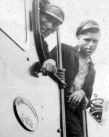 ![]() Driver John Edward Webber who was at Nine Elms from 1956 until 1967. He is pictured here standing on the right with Driver Charlie 'Happy' Gordon (Photo Nigel Webber collection)