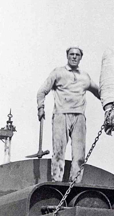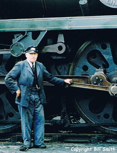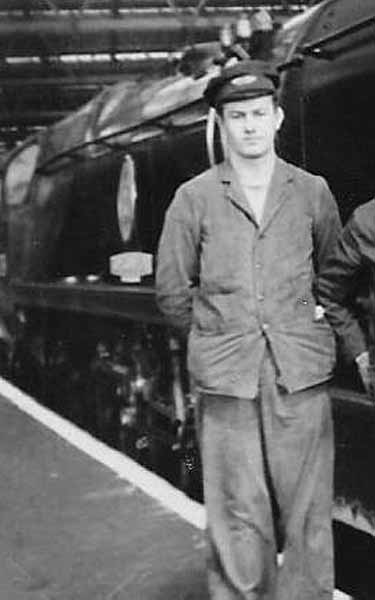 ![]() Nine Elms engineman Jim Sullivan. (Photo Alan Cook collection)