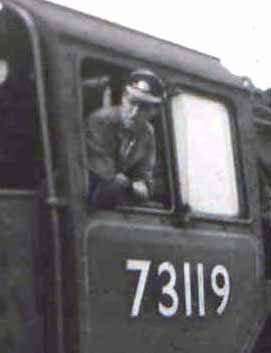 Fireman Peter Staniford - click here for photograph ![]() Driver Malcolm Stevenson on board 73119. (Photo Malcolm Stevenson collection)