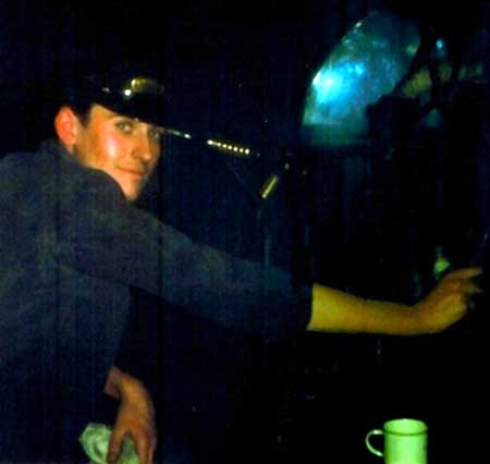 ![]() Fireman Dave 'Dropgrate' Wilson on board 35023. (Photo copyright Dave Wilson)